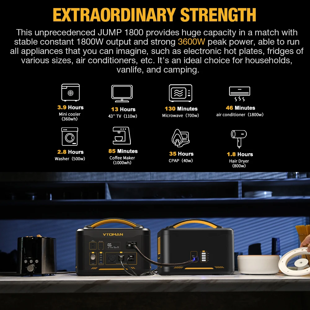 Support VTOMAN JUMP 1500 Extra Battery: from 1548Wh to 3096Wh